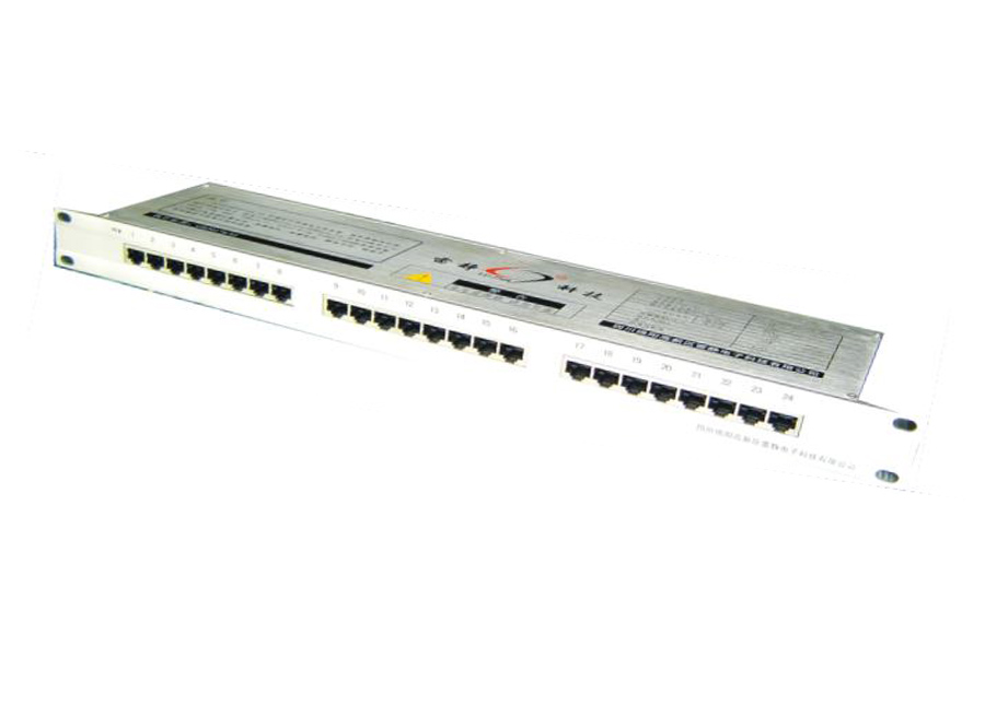 5TRJ8-4-24型24口網絡交換機信號防雷器系RJ45系列網絡通訊專線信號防雷器是依據IEC的標準而設計。一般用于計算機網絡信號防雷保護,接口形式為標準的R J45水晶接頭,保護線常有1/2、 3/6和/1/2/3/4/5/6/7/8等方式。