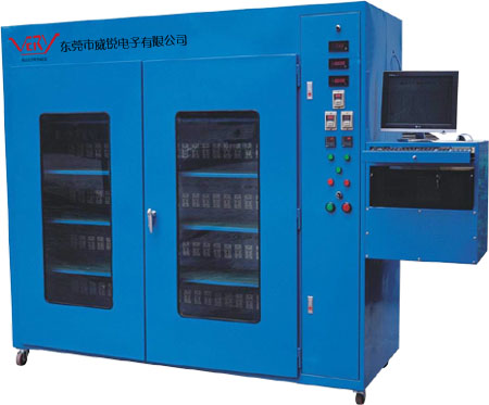 功能簡介: ◆ 設定:可設定各區域溫度范圍、產品型號、工作日期、老化總時間、通斷間隔時間、電壓上下限值等。 ◆ 接收界面:實時循環檢測每一個通道電壓、電流值,并在相應的負載區間上顯示測量值,可通過電壓上限,電壓下限、電流上限、電流下限來設定正常值的范圍,凡在設定值范圍內顯示為藍色,不在設定值范圍內顯示為淺灰色。 ◆ 曲線顯示:可對任一通道負載進行實時曲線顯示,電壓曲線顯示最近該通道48小時內的電壓變化曲線;電流曲線顯示該通道負載進行實時曲線顯示該通道最近48小時內的電流變化曲線。 ◆ 數據儲存:可保存最近48小時內的所有通道所測數據,并可對所有儲存數據進行查詢,及顯示其相應的電壓,電流曲線。 ◆ 分析界面:可分析老化車工作時間內所有產品數據的CP、CPK值。 恒溫老化房及監控系統