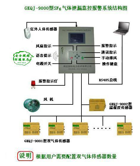 本系統(tǒng)可廣泛應(yīng)用于各種電壓等級的SF6開閉室、SF6開關(guān)室、組合電器室(GIS室)、SF6主變室等。