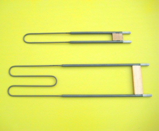 二硅化鉬電熱元件是一種以硅化鉬為基礎的電阻發熱元件,其在氧化氣氛下加熱到高溫,表面生成一層致密的石英玻璃膜,保護其不再氧化。因此,其具有獨特的高溫抗氧化性。在氧化氣氛下,其最高溫度為1800度,可以用作電子、陶瓷、磁性材料、玻璃、冶金、耐火材料等工業高溫爐的加熱元件。二硅化鉬電熱元件的電阻不隨使用而改變,也就是不老化,因此新舊元件可以混合使用。必須指出的是二硅化鉬電熱元件不宜在400~700℃范圍內長期使用,否則元件會因低溫的強烈氧化作用而粉化。