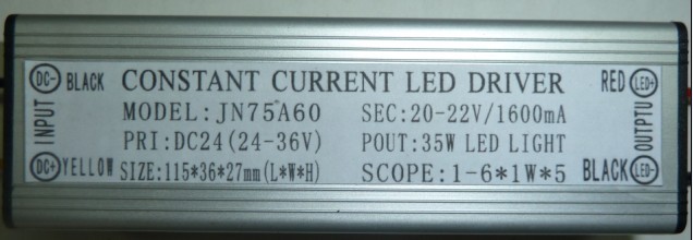 4)、可接單顆60W大功率LED,(規(guī)格:33V-35V/1800MA