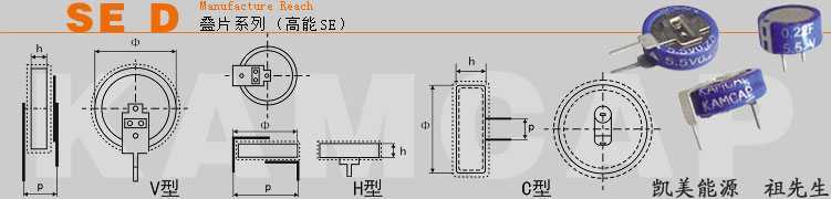 | SE-5R5-D224VYH | 0.22F | 5.5V | 75 | 11.5×4.5 | 12 |