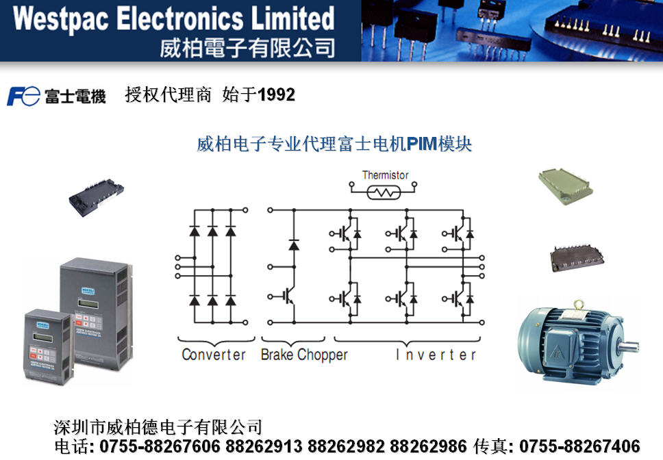富士電機(jī)PIM模塊7單元IGBT模塊富士PIM(整流橋+剎車+三相逆變)中國區(qū)代理商-威柏電子 主要產(chǎn)品有: