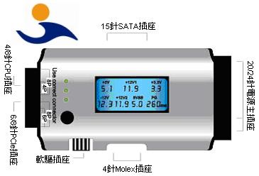 此產品是採用液晶顯示器(LCD),顯示ATX電腦電源的電壓。易於連接的ATX(24pin)與P4/P6/P8插座,以液晶顯示器顯示ATX 電源的電壓值。