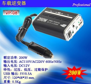 車載逆變器(電源轉換器、Power Inverter)是一種能夠將DC12V直流電轉換為和市電類似的AC220V交流電,供一般電器使用,是一種方便的車用電源轉換器。手機、小靈通、筆記本電腦、MP4/MP3,對講機、數碼相機、攝像機、照明燈具類、電視機,CD/DVD機、PDA、游戲機、打印機、電動剃須刀、部分醫療急救、野外探測、公安、搶險設備等各種電器,是野外作業,駕車旅游,移動辦公,停電應急的必備佳品,能成功解決駕車行進中以及缺電場合的應急用電問題。