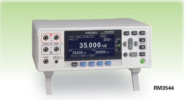 商品名稱】:微電阻計 【型 號】:RM3544 【生產廠商】:日本日置HIOKI 適合手動產線和自動產線的簡易微電阻計 •基本精度0.02%,最小分辨率1μΩ,最大測試電流300mA •可測范圍0.000mμΩ(測試電流300mA)~3.5MΩ •通過保護端口使用的探頭并提高測試電流,實現抗干擾測量 •使用比較判斷燈(選件)和大音量的判斷音,可在生產現場準確判斷合格與否 •帶適合NPN/PNP的EXT I/O接口,可用于各種自動產線中(-01) 基本參數 電阻測量量程 30 mΩ (最大顯示35.000 mΩ, 分辨率1 μΩ)~3 MΩ量程 (最大顯示3.5000 MΩ, 分辨率100 Ω), 9檔切換 基本精度: ±0.020 % rdg. ±0.007 % f.s. 測量電流 [30mΩ量程時] DC 300 mA~[3MΩ量程時] DC 500 nA 開路端口電壓 最大DC 5.5 V 溫度測量 -10.0~99.9℃, 基本精度: ±0.50℃ (和溫度傳感器Z2001的組合精度) 測量速度 FAST (50Hz: 21ms, 60Hz: 18ms), MED (101ms), SLOW (401ms) 顯示更新率 無規定 功能 溫度補償功能,比較器(ABS/REF%),鎖鍵(OFF/菜單鎖定/全部鎖定),顯示位數選擇功能(5位/4位),電源頻率設置(AUTO/50Hz/60Hz),縮放,判斷音設置,自動保持,平均值,面板保存/讀取 存儲功能 無 通訊接口 [僅RM3544-01] 從RS-232C/打印機 (RS-232C)/USB中選擇任意一種 電源 AC100~240 V, 50/60 Hz, 額定功率: 15 VA 體積及重量 215W × 80H × 166D mm, [RM3544] 0.9 kg, [RM3544-01] 1.0 kg 附件 [RM3544] 電源線×1, 夾型測試線L2101×1, 使用說明書×1, 保險絲×1 [RM3544-01] 電源線×1, 夾型測試線L2101 ×1, EXT I/O用公頭連接器×1, 使用說明書×1, 應用光盤×1, USB連接線(A - B 型) ×1, 保險絲×1 測試用探頭 夾型測試線 L2101 RM3544系列用, B: 83mm, L:1.5m 夾型測試線 L2102 RM3544系列用, B: 140mm, L:1.5m 夾型測試線 L2103 RM3544系列用, B: 138mm, L:1.5m 夾型測試線 L2104 RM3544系列用, B: 118mm, L:1.5m 比較器判斷燈 L2105 RM3544/3548系列用,2m 溫度傳感器 Z2001 RM3544系列用,1.75m 關于探頭長度