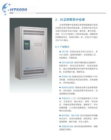 應(yīng)急照明集中電源是應(yīng)急照明疏散知識系統(tǒng)內(nèi)消防應(yīng)急燈具的供電設(shè)備。采用現(xiàn)代電子技術(shù)與現(xiàn)代控制技術(shù)設(shè)計(jì)制造,集充電、集中控制、那邊、DC/DC轉(zhuǎn)換為一體的供電設(shè)備。根據(jù)系統(tǒng)的規(guī)模及特點(diǎn),電源分兩種,即:交流220V輸出與DC24V輸出。2.1 產(chǎn)品特點(diǎn)
