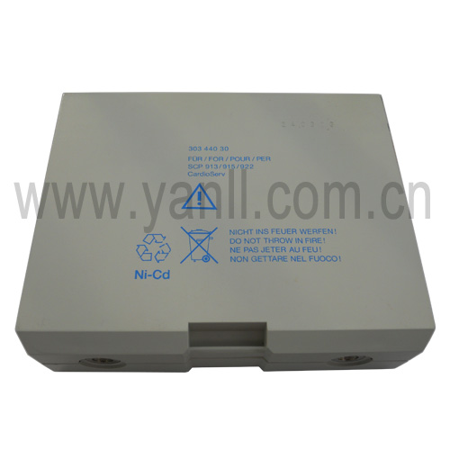 GE Cardioserv除顫儀電池 1.型號:30344030 2.電壓:12V 3.容量:1300mAh 4.類型:Ni-MH SCR 5.顏色:灰色 6.外殼:有 7.重量:946克 8.尺寸:111*85*23mm 9.適用機型: GE Cardioserv除顫儀