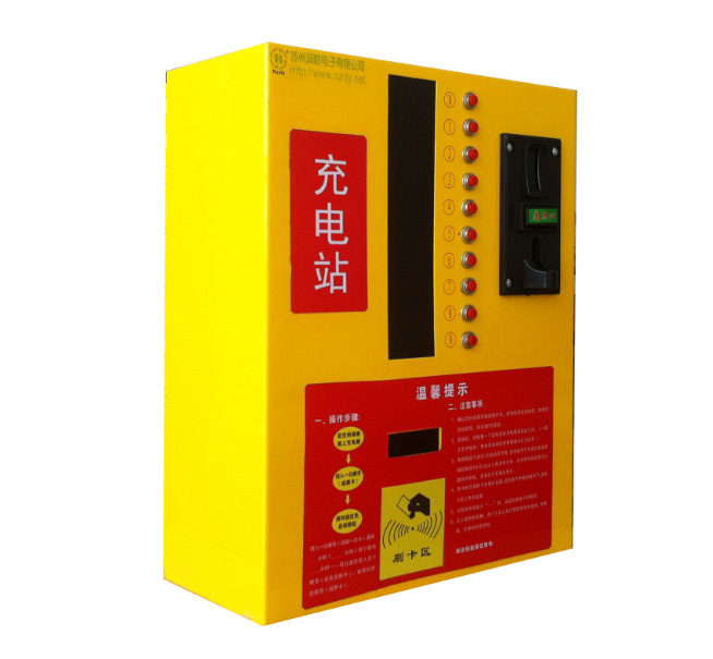 電瓶車電動(dòng)車充電站由一臺(tái)控制主機(jī)外加十個(gè)兩孔插座構(gòu)成,設(shè)備內(nèi)裝有電表及空氣開(kāi)關(guān),控制有十路供電通道,每路通道有其獨(dú)自的顯示窗口與控制按鍵。用戶投幣或者刷卡后,按下其中的一個(gè)控制按鍵,就會(huì)給對(duì)應(yīng)通道插座供電,各通道的工作狀態(tài)與工作時(shí)間,可通過(guò)其對(duì)應(yīng)的顯示窗口顯示出來(lái)。考慮為適應(yīng)不同型號(hào)電動(dòng)車,充電時(shí)還是需要插接上電動(dòng)車自帶的充電器。