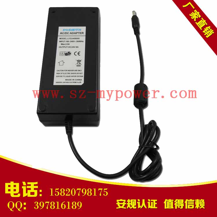 24V8A電源適配器,電源適配器產品適用于LED燈條、LED照明、平板電腦、空氣凈化器、按摩器、顯示器、安防監控、電動工具、電池充電器等,電源適配器通過CE、UL、class2、TUVGS、KC、PSE、SAA、FCC、EMC、LVD等認證!