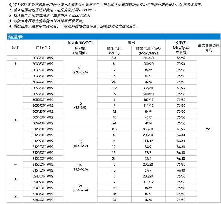 金升陽表貼系列 B_XT-1WR2 系列描述