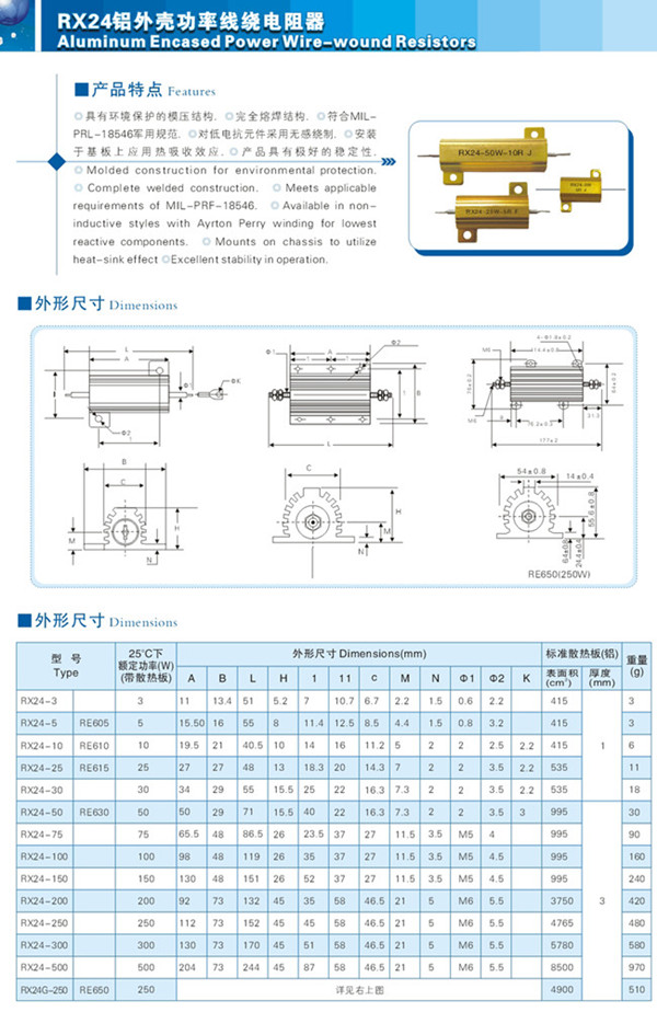 供應(yīng)RX24鋁外殼功率線繞電阻,金盾直銷RX24-3W模壓線繞電阻器