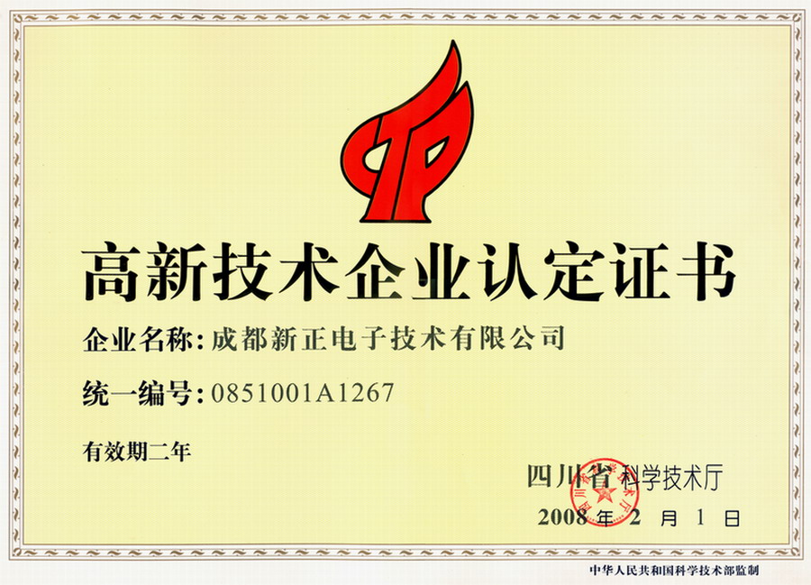 高新技術企業認定證書