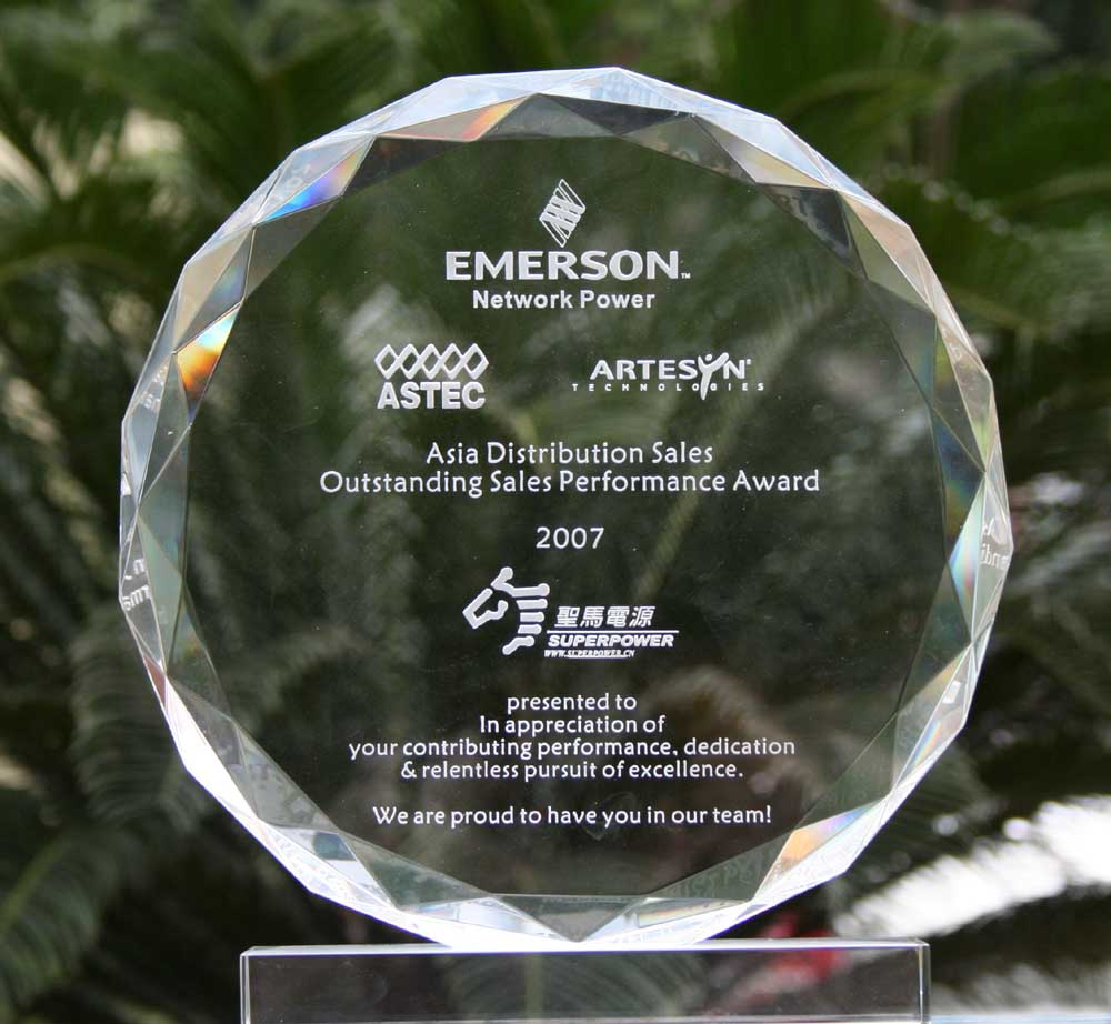 2007年度圣馬電源獲Astec/artesyn亞太區銷售第一名獎