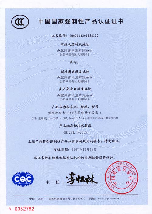 CCC認證證書