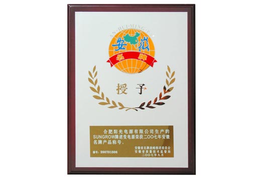 安徽名牌產品證書