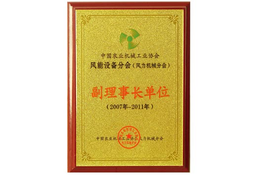 中國農業機械工業協會風能設備分會副理事長單位證書