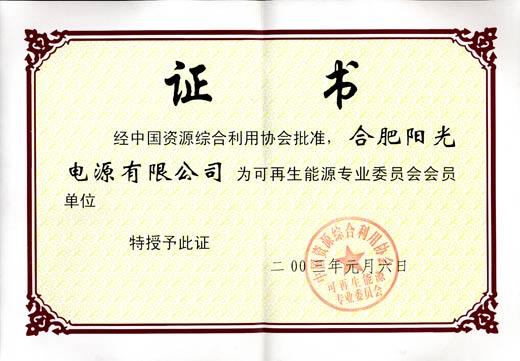 可再生能源專業委員會會員證書