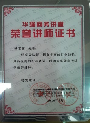 中國華強(qiáng)電子網(wǎng)頒發(fā)的榮譽講師