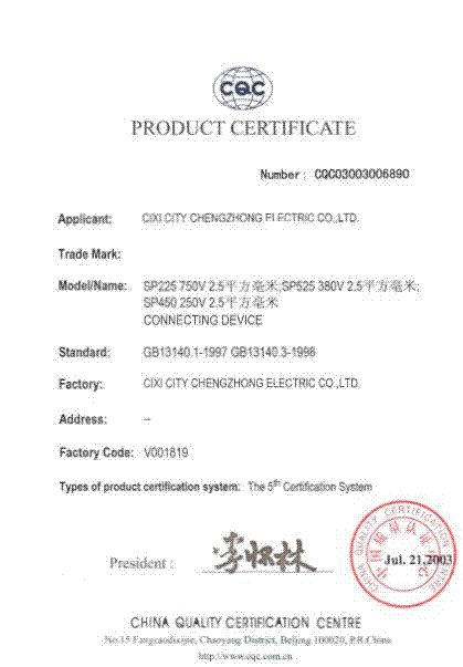 CQC證書