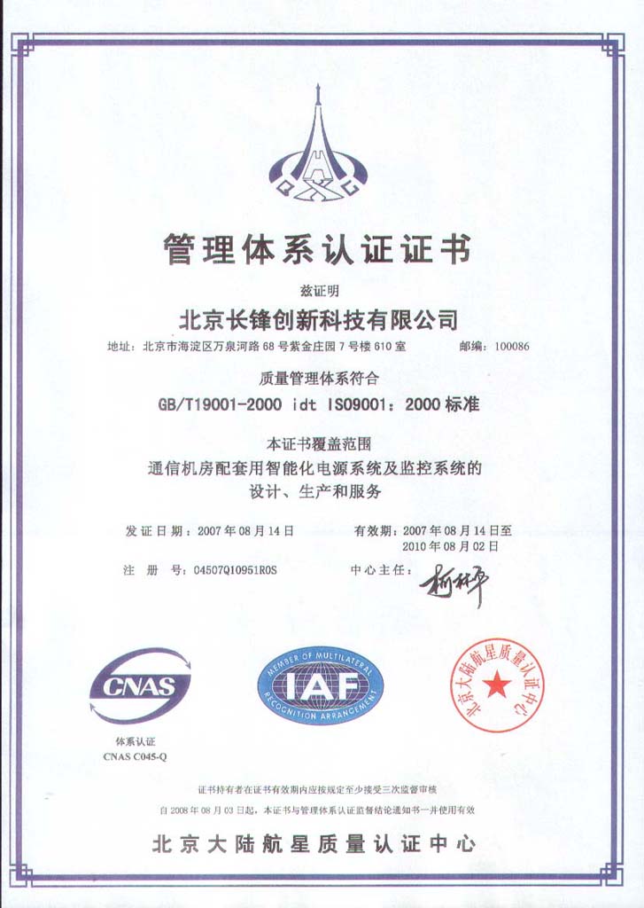 ISO9001質(zhì)理體系認(rèn)證證書