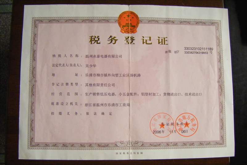 稅務登記證書