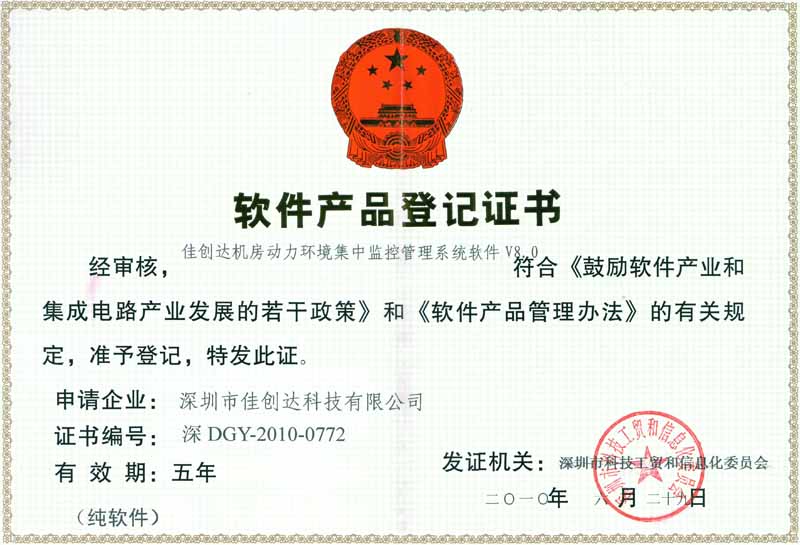機(jī)房環(huán)境監(jiān)控系統(tǒng)-軟件產(chǎn)品登記證書