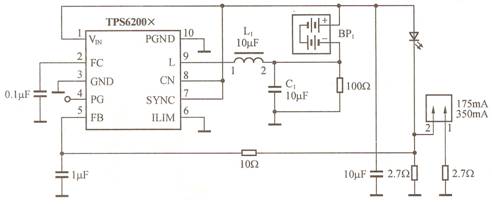 采用提升電源調(diào)節(jié)器驅(qū)動白光LED的電路如圖1所示。提升電源調(diào)節(jié)器TPS6200×可以產(chǎn)生白光LED所需要的高電壓。內(nèi)部升壓功率級可連接VIN與PGND端,從而為輸出引腳L提供電流。此電路通過打開輸出端開關(guān)進行工作,從而可以連接電感器L1上的電池電壓。一旦電感器L1儲存了足夠的能量,輸出端開關(guān)立即關(guān)閉。電感器電流可驅(qū)動開關(guān)節(jié)點切換到負(fù)極,并驅(qū)動輸入端的能量轉(zhuǎn)移到輸出電容器C1中。由于輸出端與輸入端的開關(guān)是MOSFET管,因此壓降低于二極管方案,從而可以實現(xiàn)高的效率。調(diào)節(jié)器TPS6200×通過檢測電阻器能監(jiān)控流經(jīng)白光LED 的電流,同時將檢測電壓與內(nèi)部的0.45V參考電壓進行對比,以實現(xiàn)調(diào)節(jié)功能。因此,電流與照度是檢測電阻器電壓的函數(shù)。雖然TPS6200×的內(nèi)部參考電壓比其他大多數(shù)變換器的電壓要低,但也會造成功率損耗。在采用2.8~4V的白光LED電壓時,其效率將降低10%~14%。應(yīng)通過降低電阻器的阻值并采用放大器實現(xiàn)低電壓,以降低這種損耗。