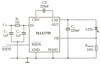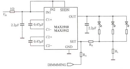 (2)用電荷泵升壓變換器驅(qū)動白光LED的方案
