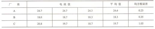 表1 不同廠商白光LED的測試結(jié)果(mA)