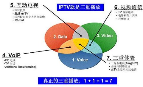 IPTV的主要賣點是交互,及Inter網內業務的擴充。IPTV還可以非常容易地將電視服務和互聯網瀏覽、電子郵件,以及多種在線信息咨詢、娛樂、教育及商務功能結合在一起,在未來的競爭中處于優勢地位。
