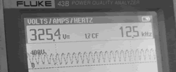 可以明顯看到頻率為12.5kHz的高頻分量,實(shí)測(cè)電池正極與大地浮置電壓有325V,斷開電池架接地,電池架與大地間有100多伏浮置電壓。接通電池架與大地,電池架與大地漏電流高達(dá)0.11A。按照行業(yè)標(biāo)準(zhǔn)(GB13870.1-93《電流通過人體的效應(yīng)》),50mA的電流就可以致人死亡。該型號(hào)UPS在電池架未與大地短接時(shí),人體觸摸到電池架有明顯被電擊的感覺。原因是充電回路中高頻分量通過人體與大地形成通路,造成人體觸電。同時(shí),此高頻諧波嚴(yán)重干擾了外置的UPS電池單體電壓監(jiān)控系統(tǒng),使電池電壓監(jiān)控測(cè)試儀無(wú)法正常工作。