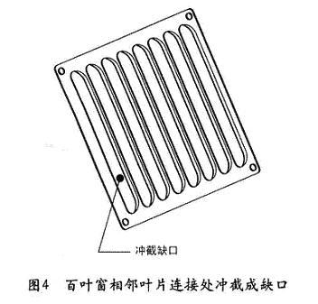 4)為實現(xiàn)氣流的通暢,減小風阻,增大出風口面積,百葉窗的相鄰葉片連接處需要沖截成缺口,如圖4所示。