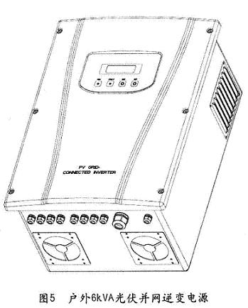 該上、下雙層獨立密封及轉(zhuǎn)90度風道的結(jié)構(gòu)已成功應用于戶外6kVA光伏并網(wǎng)逆變電源的結(jié)構(gòu)設計上(見圖5),產(chǎn)品整機性能可靠,完全滿足戶外運行的特殊要求。
