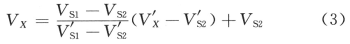 為了消除信道給測量帶來的誤差,在電路和程序中增加了自校準部分。其主要原理是通過比對基準電壓和待測電壓在相同信道中的測量值,進一步消除系統(tǒng)信道帶來的誤差。基準電壓通過穩(wěn)壓器件和一系列分壓電阻得到一組不同量級且高精度的電壓基準源,設(shè)置為1 mV,10 mV,50 mV,100 mV,500 mV,1 V等。設(shè)某通道的輸入信號為VX,經(jīng)過測量得到的結(jié)果為V'X;選擇合適的量程范圍,選擇距離此范圍最接近的基準電壓VS1和VS2,經(jīng)過同樣的信道測量的結(jié)果為V'S1和V'S2,那么根據(jù)相似性原理可以得到: