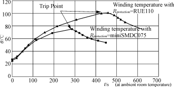 圖2PPTC用變壓器次級(jí)線圈的過熱保護(hù)特性