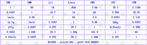 CFM:Cubic Feet Per Minute,立方英呎/分(ft3/min)