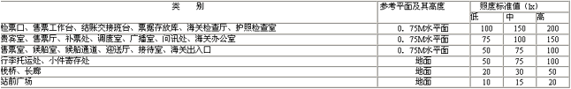 港口旅客站建筑照明的照度標(biāo)準(zhǔn)值 表10