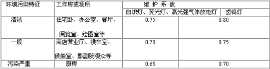 注:表中數(shù)值為工作面上的平均照度