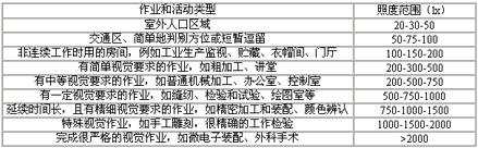 CIE對(duì)不同作業(yè)和活動(dòng)推薦的照度范圍 表15