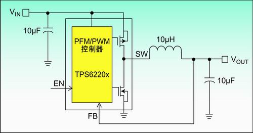 TPS6220x系列降壓轉換器具有內部環路補償功能。因此,必須選擇支持內部補償功能的外部LC濾波器。對于此類器件而言,內部補償最適合16kHz的LC轉角頻率(corner frequency),即10uH電感器與10uF輸出電容器。根據一般經驗法則,在選用不同輸出濾波器時,L*C乘積不應當大范圍變動。在選擇更小的電感器或電容器值時,會造成轉角頻率增加至更高頻率,因此這一點尤為重要。