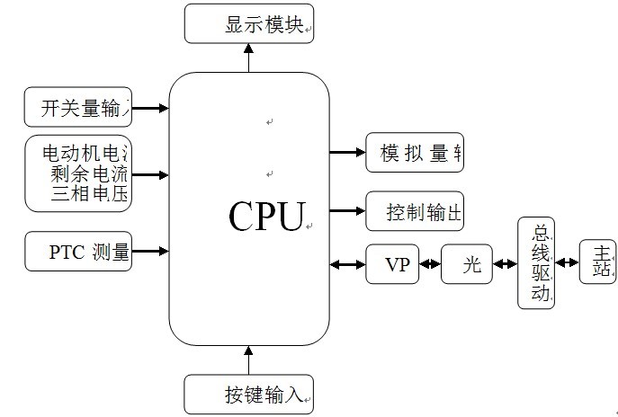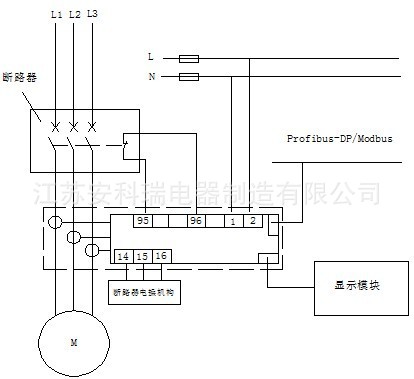 在分散工作環境中,有大量單臺電機在工業生產中運行,這些電機可不要通訊功能,僅需可靠的起、停、故障保護、故障分析、運行參數查看。以很低的成本就能實現以上功能。其接線原理圖如下: