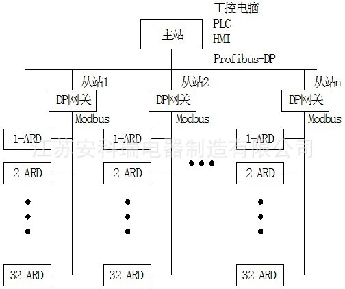 ARD可采用PROFIBUS或者成本低廉的MODBUS現場總線組網,在工業控制系統中,我們可以把就地ARD馬達控制保護器和上級DCS系統之間構成高性能的通訊,所有的控制命令,運行數據均可通過屏蔽雙絞線,玻璃纖維光纜傳輸,這樣我們在保證傳輸數據準確,迅速,傳輸距離遠的同時,可以大量的節省由當地至集控室的聯系電纜。