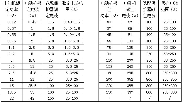 注:表2數據適用于AC400V,50Hz,1500轉/分的四極鼠籠式電動機