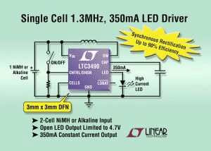 凌特公司(Linear Technology)推出為驅(qū)動大電流白光LED而優(yōu)化的同步升壓型DC/DC轉(zhuǎn)換器——LTC3490。該器件可以高達90%的效率工作,最大限度地延長了電池運行時間,而1V至3.2V的輸入電壓范圍使其能從單節(jié)或雙節(jié)堿性/鎳氫金屬電池提供高達350mA的電流。2.8V至4V的輸出電壓范圍完全符合大電流LED的正向電壓要求。LTC3490為需要高達1W功率的LED應(yīng)用提供了恒定電流驅(qū)動。