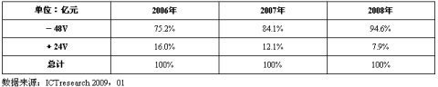 表3 2006-2008年中國通信電源市場產(chǎn)品結構規(guī)模比例分析