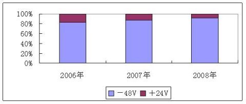 在中國通信電源市場上,2008年仍然是以-48V產(chǎn)品為主流,+24V產(chǎn)品緊隨其后,主要原因為現(xiàn)在電信設備主要采用-48V產(chǎn)品,+24V產(chǎn)品主要為維修及固網(wǎng)用戶少量設備在使用,綜合造成了+24V產(chǎn)品增量較小。從發(fā)展勢頭看,更安全、更節(jié)能的產(chǎn)品市場前景更值得期待。