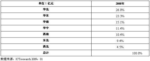 表5 2008年中國通信電源區(qū)域市場規(guī)模