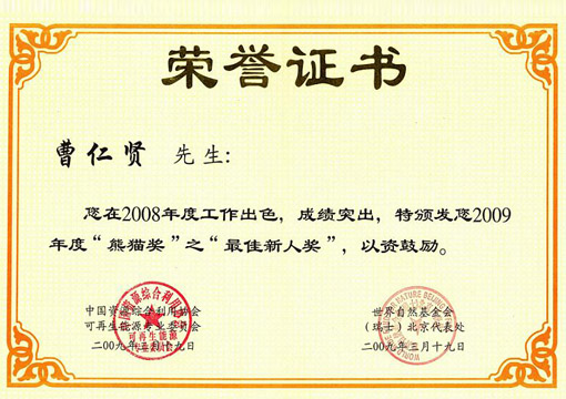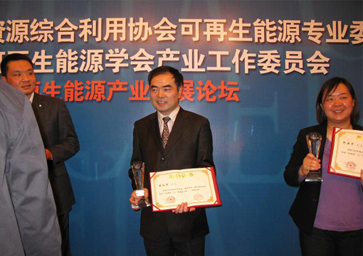 近日,世界自然基金會(huì)(WWF)聯(lián)合中國資源綜合利用協(xié)會(huì)可再生能源專委會(huì)(CREIA)在北京隆重頒發(fā)“2008中國可再生能源熊貓獎(jiǎng)”,以表彰為我國可再生能源發(fā)展作出重要貢獻(xiàn)的個(gè)人,我司總經(jīng)理曹仁賢榮獲“最佳新人獎(jiǎng)”。全國人大環(huán)資委主任毛如柏,國家能源局可再生能源司副司長史立山,中國資源綜合利用協(xié)會(huì)可再生能源專委會(huì)主任朱俊生,以及國家發(fā)改委,財(cái)政部、科技部等有關(guān)領(lǐng)導(dǎo)出席了會(huì)議。