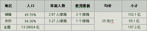 注:參考中國人口與發展研究中心信息服務部提供的《2008年全國人口數及其構成》,出廠均價綜合 各檔產品銷售價格.
